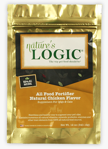 Nature’s Logic All Food Fortifier is a nutritious whole food supplement that you can use to augment your pet’s diet. The ingredients are 100% all-natural food sources such as chicken liver, sardine meal, egg shell, kelp, vegetables and more!