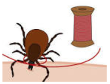 Step 2 With Thread: Loop the thread around the tick’s mouth, as close to the skin as possible. Tighten the loop, and gently pull upwards.